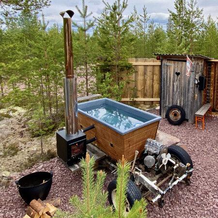 Rent the Badtunna in our SPA-Garage for up to 2 people and relax in the warm water in the middle of the Swedish wilderness and a special atmoshere.