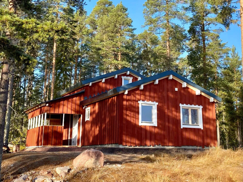 Röda Pelle is located in the heart of Nornäs, besides the village road, overlooking two lakes.